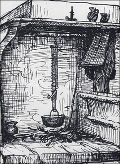 Zentrum der alten Bauernküchen war der Harsch, ein Kochbereich, in dem der Kessel mit dem zu bereitenden Essen an einem Hahl hing, wie in der Abbildung zu erkennen. Der Hahl war die zweiteilige verschiebbare Zahnstange mit einer Halterung, die in die Zähne einrastete. Mit dieser Technik konnte die Höhe des Kessels über dem Feuer geregelt werden. Legte die Hausfrau einen oder mehrere Zähne zu, geriet der Kessel tiefer ins Feuer und der Kochprozess wurde beschleunigt.