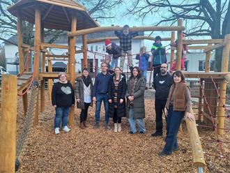 Die Jungs und Mädchen der Grundschule Hausen freuen sich über ein neues Spielgerät.