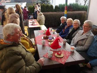 Ab 15 Uhr verlagerte sich das Beisammensein in das Außengelände des Familienzentrums. In friedvoller Lichterstimmung wurden Glühwein und Kinderpunsch angeboten.