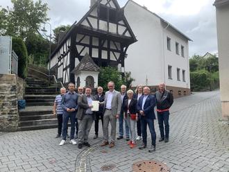 Landrat Michael Köberle hat dem Waldbrunner Bürgermeister Peter Blum zwei Förderbescheide aus der Säule B des Zukunftsfonds übergeben. Mit 4.200 Euro fördert der Landkreis Limburg-Weilburg die Anschaffung eines neuen Rasentraktors für den FC Waldbrunn. Einen zweiten Förderbescheid in Höhe von 14.700 Euro hatte Landrat Köberle für Sanierungsmaßnahmen an der Burgschmiede in Ellar mitgebracht. „Nach Aussage des Kultur- und Geschichtsvereins Ellar sind seit der grundhaften Renovierung der historischen Burgschmiede vor nahezu 40 Jahren Schäden an der Bausubstanz erkennbar geworden. Diese Schäden bedrohen inzwischen den Bestand und die konstruktive Standfestigkeit des rund 500 Jahre alten Bauwerks so offensichtlich, dass die Sanierung des gemeindeeigenen, denkmalgeschützten Bauwerks dringend erforderlich wird. Diese Maßnahmen müssen auch zeitnah durchgeführt werden, damit die Öffnung des Burgschmiede-Museums nicht gefährdet ist“, so Bürgermeister Peter Blum.