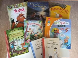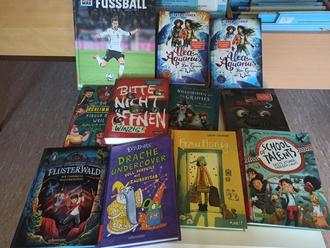 Es gibt auch spannenden neuen Lesestoff für die kommende Ferienzeit zum Vorlesen und für Fortgeschrittene zum Selberlesen - einfach mal reinschauen samstags von 13.30 - 15.00 Uhr. Die Ausleihe ist kosten-los und für jeden zugänglich.