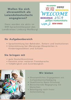Limburg-Weilburg. Die Kreisverwaltung Limburg-Weilburg baut ihren bestehenden WIR-Laiendolmetscherpool aus und sucht daher mehrsprachige Bürgerinnen und Bürger, die Interesse und Zeit haben, sich künftig für die ehrenamtliche Sprachmittlung zu engagieren. Dies können Menschen sein, die neben der deutschen Sprache eine oder mehrere Fremdsprachen fließend sprechen und kulturelles Hintergrundwissen mitbringen.