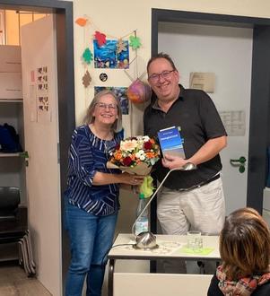 Im Namen der Bücherei Ellar bedankt sich Evamaria Gubisch-Heun bei Michael Wagner