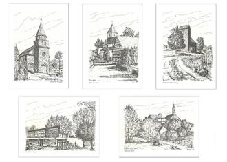 Ab sofort sind die abgebildeten Federzeichnungen auf der Gemeindekasse für zwei EUR pro Stück erhältlich.