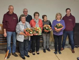 Auf dem Bild von links nach rechts: Heinrich Weiß (Vorstand), Erika Wahl, Werner Wahl, Ria Otterbein, Emmi Schönherr, Helga Müller, Andreas Ebert (Vorstand)
