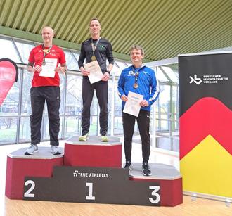 Am Samstag gewann Gunnar gleich in seinem ersten Rennen über die 400m Strecke. In 54,46sec blieb er nur knapp über seiner Saisonbestleistung und ließ die Konkurenz souverän hinter sich. Insgesamt war dies sein 30. Titel bei Deutschen Meisterschaften, der erste im Trikot des TVA. Weiter ging es über die 60m Hürden. In einem sehr knappen Rennen pulverisierte Gunnar seine bisherige Saisonbestleistung (9,54sec) und lief in 8,87sec zu einer persönlichen Bestleistung und zu Gold.