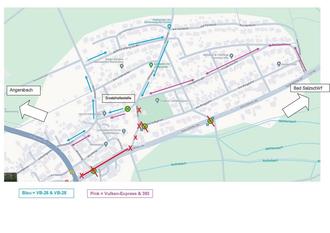 Die Haltestellen „Ortsmitte“, „Friedhof“ und „Siedlung“ können von allen Linien nicht mehr angedient werden und entfallen.