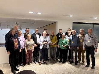 Auf Einladung der Wahlkreisabgeordneten des Vogelsbergkreises, Jennifer Gießler (CDU), besuchte das Bürger Bündnis lebenswertes Wartenberg den Hess. Landtag. Nach der herzlichen Begrüßung im Hohen Haus zu Wiesbaden durch die Landtagsabgeordnete wurden der Wartenberger Besuchergruppe die Aufgaben und Struktur des Hess. Landtags vorgestellt. Anschließend verfolgte die Gruppe über ca. 60 Min. gespannt das Geschehen im Plenarsaal von der Besuchertribüne aus. Hier konnte man live verfolgen, wie beispielsweise eine Gesetzesänderung zur Beschleunigung von Planfeststellungsverfahren, mit dem Ziel des Bürokratieabbaus und um Zukunftsinvestitionen schneller auf die Straße zu bringen, mehrheitlich von der aktuellen schwarz-rot geführten Landesregierung verabschiedet wurde,. Nach dem Verlassen der Besuchertribüne ließ es sich Staatssekretär Michael Ruhl aus Herbstein nicht nehmen, um den Wartenbergern persönlich seine Aufwartung zu machen.