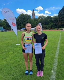 Ein weiteres erfolgreiches Wochenende liegt hinter den U16-Athletinnen des TV Angersbach. Bei den Hessischen Jugendmeisterschaften in Friedberg starteten mit Maya Habl und Lea-Sophie Schulz zwei Wartenbergerinnen in der Altersklasse W15. Lea-Sophie Schulz bestätigte ihre tolle Form aus den letzten Wochen, sicherte sich mit 5,22m im Weitsprung die Vizemeisterschaft und sorgte so für das erste Highlight des Tages aus TVA-Sicht. Noch größer war der Jubel anschließend bei Maya Habl. In ihrem ersten 300m Hürdenlauf überhaupt belegte sie völlig überraschend in 48,89sec den Silberrang. Belohnt wurden beide Athletinnen zudem mit der Berufung in die Hessenauswahl für einen Verbändevergleich im September. Außerdem erreichten die Beiden auch das Finale im 80m Hürdenlauf. Lea belegte nach 12,50sec Rang 4, Maya sprintete in 12,81sec auf Platz 6. Einen weiteren 4. Platz erreichte Lea mit 10,26m im Dreisprung. In dieser Disziplin ging das Sprungtalent das erste Mal an den Start und etablierte sich gleich in der hessischen Spitze.