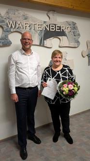 Frau Heiß begann am 1. August 1985 als Auszubildende bei der Gemeinde Wartenberg. Nach erfolgreicher Beendigung des Ausbildungsverhältnisses wurde Frau Heiß zunächst befristet eingestellt, später dann das Arbeitsverhältnis entfristet. Bürgermeister Dahlmann würdigte in seiner Ansprache das Wirken von Frau Heiß. Sie „garantiere Kontinuität in ihren Aufgabengebieten, Kontinuität in der Vorgehensweise sowie auch als Ansprechpartnerin, habe sich stets fortgebildet, sich neuen Themen zugewandt und neuen Entwicklungen gestellt.“ Bürgermeister Dahlmann gratulierte Frau Heiß, auch im Namen des Gemeindevorstandes, und freut sich auf eine weiterhin gute Zusammenarbeit.