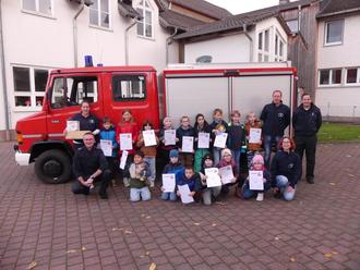 Am 2. November 2024 war es endlich soweit. Die Jungen und Mädchen der Kinderfeuerwehr "Löschtiger" der freiwilligen Feuerwehr Landenhausen trafen sich zur Abnahme des Kinderfeuerwehrabzeichens "Tatze 1" und "Tatze 2". Die Kinder hatten sich in den vergangenen Treffen sehr gut auf die anstehenden Aufgaben vorbereitet und fleißig geübt. Alle Aufgaben wurden mit Erfolg absolviert, egal ob es sich um einen Feuerwehrknoten, das richtige Anzünden eines Streichholzes oder auch das Absetzen eines Notrufes handelte.