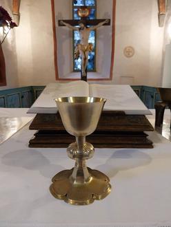 Eine sehr interessante Führung durch die Angersbacher Kirche hatte der Nachbarschaftsverein Angersbach Aktiv. Obwohl fast alle Teilnehmer hier getauft, konfirmiert und getraut wurden, konnte Jürgen Wahl doch noch Neues und Unbekanntes berichten. Angefangen mit dem Baustil des Kirchturmes, der aus dem 12. Jahrhundert stammt und dem sogenannten Bonifatius-Taufstein, der ebenfalls aus gotischer Zeit stammt und die Jahreszahl 1502 trägt. Zu aller Überraschung holte Jürgen Wahl einen Abendmahlskelch aus dem Jahr 1633. Also aus dem 30-jährigen Krieg! Überhaupt war der gesamte Vortrag in Verbindung mit der politischen Geschichte Angersbachs verdeutlicht und dadurch besser zu begreifen. Besonders betrachtet wurden die Fresken im Kreuzgewölbe des Turmes, die noch sehr gut erhalten sind und die die vier Evangelisten zeigen sowie auf der rechten Seite des Turmbogens den Ritter Georg im Kampf mit dem Drachen aus dem 13. Jahrhundert. Sehr eindrucksvoll ist das mächtige barocke Kruzifix aus dem 17. Jahrhundert vor dem östlichen Fenster im Turm. Ebenfalls aus der Zeit des Barocks ist die reichgeschnitzte Kanzel mit Moses mit den Gesetzestafeln. Zum Abschluss gingen alle noch hoch zur Orgel, auch ihre Geschichte ist sehr interessant, genau so wie die der 4 Glocken. Mit einem wunderbaren Blick von der Orgel hinunter in den Kirchenraum wurde die Führung mit einem Dank an Jürgen Wahl beendet. H.K.