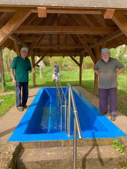 Dank der jährlich zum Saisonstart anfallenden Pflegeaktion unserer fleißigen Beckenwärter, wurde das Tretbecken in Niederwalgern jetzt mit einem neuen Anstrich versehen und wieder mit wunderbar kaltem Quellwasser befüllt. Der Rasen ist gestutzt und die Bänke stehen parat. Pünktlich zum Saisonstart mit warmen Wetter können wir uns also wieder etwas gesunde Abkühlung verschaffen.