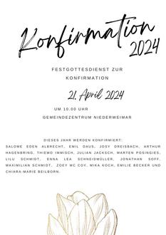 | 10.00 Uhr | Festgottesdienst zur Konfirmation in Niederweimar |