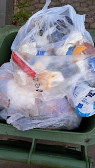 | - | Plastiktüten aller Art, hierzu zählen auch die im Einzelhandel als kompostierbar angebotenen Bioabfallbeutel (!) |