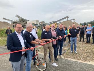 Anschließend wurde mit dem Durschneiden des roten Bandes der neue, 1,3 km lange Radweg offiziell seiner Bestimmung übergeben. Der erste Nutzer war Altbürgermeister Peter Eidam mit seinem Retro-Fahrrad. Damit wurden auch die Tore des Werkes für die Bevölkerung geöffnet. Im Laufe des Nachmittags konnten viele Interessierte begrüßt werden.