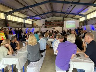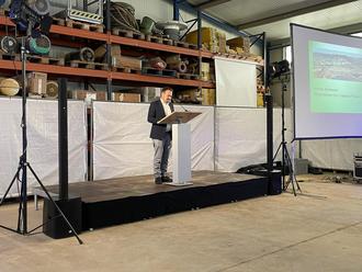 Vor diesem Hintergrund bot es sich an, das Erreichte einer breiten interessierten Öffentlichkeit im Rahmen eines Tages der offenen Tür vorzustellen. Am Vormittag begrüßte zunächst Jens Rathgeber, Regionalmanager Aggregates West, in der festlich geschmückten Werkstatthalle die zahlreich erschienenen Gäste aus dem Kreis der Kunden und Kundinnen, der Kommunalpolitik, den Behörden und der Verwaltung sowie insbesondere den Bürgermeister der Gemeinde Weimar (Lahn), Markus Herrmann. Anschließend stellte Tilo Hahn, Leiter Gesteinskörnungen Deutschland, die Aktivitäten der Holcim Deutschland vor und ging dabei insbesondere auf die Herausforderungen eines weltweit tätigen Zementherstellers zum Schutz des Klimas ein. Bürgermeister Herrmann betonte die schon seit Jahrzehnten bestehende vertrauensvolle Zusammenarbeit mit dem Unternehmen. In seinem Vortrag spannte Thilo Orgis, Projektmanager Lagerstätten/ Genehmigungen/Umweltschutz, einen Bogen von der Historie des Werks über die aktuellen Abbau- und Rekultivierungstätigkeiten hin zu dem anstehenden umfangreichen Genehmigungsverfahren für die langfristige Sicherung des Standortes.