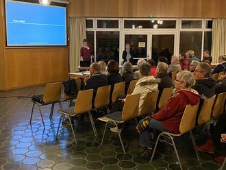 Etwa vierzig Personen waren der Einladung der Gemeinde Weimar in das Bürgerhaus Niederweimar am 14. November 2022 gefolgt, um sich über das Programm „Zukunft Innenstadt“ wie auch über „Neue Formen des Miteinander Wohnens“ zu informieren.