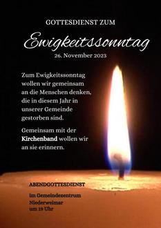 | 19.00 Uhr | Abendgottesdienst zum Ewigkeitssonntag gemeinsam mit der Kirchenband in Niederweimar |