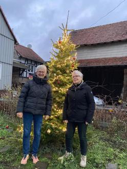 Die Oberweimarer vermissten ihren Weihnachtsbaum, der traditionell jedes Jahr vom Ortsbeirat am Ortseingang aufgestellt wurde. Daraufhin angesprochen beschlossen kurzerhand einige Frauen der Gymnastikgruppe dies zu ändern.