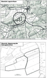 (2) Der Geltungsbereich des Bebauungsplanes und der FNP-Änderung ist den nachfolgenden Übersichtskarten zu entnehmen und umfasst die Flurstücke 41/1, 43, 44, 45, 50, 51, 52/1, 69, 103 und 121/46 in der Flur 15, jeweils Gemarkung Allna. Die externen Ausgleichsflächen liegen in der Flur 11, Flurstück 77/1tlw. in der Gemarkung Allna und in der Gemeinde Lohra, Gemarkung Nanz-Willershausen in der Flur 4, Flurstück 2tlw.