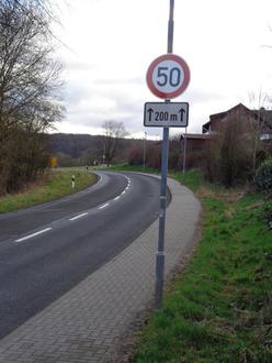 Die Regelung (50 km/h) bezieht sich allerdings nur auf den ortsausgangs fließenden Verkehr, wodurch nun aber gerade entlang des Fußweges in Richtung des Kindergartens die Sicherheit für die Fußgänger verbessert werden konnte