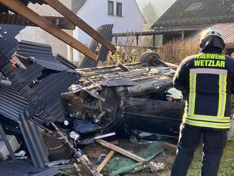 Ein PKW aus Richtung Wetzlar von B49 im Verlauf der Abfahrt Garbenheim von Fahrbahn abgekommen und in den Garten und an das Haus eines Anwesens der Straße „Raubach“ in Garbenheim geschleudert. Fahrer allein im Fzg., eingeschlossen aber nicht eingeklemmt von Feuerwehr gerettet und dem Rettungsdienst übergeben.