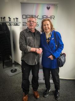 Im weiteren Verlauf widmete sich Schwab der Hensoldt-Werkstatt und zwei ihrer bedeutenden Vermächtnisse: dem legendären Prisma, das über Generationen hinweg den hervorragenden Ruf der Hensoldt-Dialyt-Ferngläser begründete, sowie der Kleinbildkamera Hensoldt Publica. Letztere war zwar die erste Wetzlarer Messsucherkamera am Ende des Zweiten Weltkriegs, blieb jedoch wirtschaftlich erfolglos und ist heute eher eine Randnotiz der Fototechnik - eine dennoch ausgesprochen interessante. Eine Bereicherung des Abends war der Besuch von Christine Belz-Hensoldt, der Urenkelin des Optikpioniers. Sie stand dem Publikum für Fragen zur Verfügung und gab zusätzliche Einblicke in die Familien- und Unternehmensgeschichte. Am 13. Mai 2026 wird sie selbst einen Vortrag im Rahmen des Optikjahres halten.