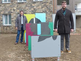Der Lindenplatz am Liebfrauenberg in der Wetzlarer Altstadt nimmt nach einer Umgestaltung im Rahmen des Bauprojektes Domhöfe allmählich wieder seine Form als Spielplatz, Ruhebereich und grüne Oase an. Als erstes Spielelement wurde jetzt ein „Goethe-Chaosbild“ installiert. In den begehbaren Tableaus wird aus dem richtigen Blickwinkel heraus ein Scherenschnitt als Standsilhouette von Goethe sichtbar. Mit diesem besonderen Spielelement werde auf dem Platz mitten in der Altstadt auf ein Stück Stadtgeschichte Bezug genommen, erläutert Andreas Viertelhausen, Beauftragter für das Baudezernat.