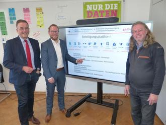 v.l. Oberbürgermeister Wagner, Büroleiter Christoph Wehrenfennig und Stadtrat Norbert Kortlüke eröffneten das Büro der Stabsstelle (Foto: Stadt Wetzlar)
