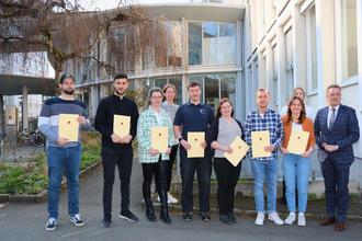 Acht Absolventinnen und Absolventen aus sechs verschiedenen Ausbildungsberufen haben bei der Stadt Wetzlar im Winterhalbjahr ihre Berufsausbildung beziehungsweise ihr Studium erfolgreich beendet und ihr Abschlusszeugnis von Oberbürgermeister Wagner erhalten.