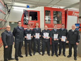 Der Leiter der Wetzlarer Feuerwehr, Erwin Strunk, beförderte Jan-Cedrik Schmeer zum Feuerwehrmann, Alexander Mohr zum Hauptfeuerwehrmann, Lukas Unsin und Alexander Witt zum Oberlöschmeister. Außerdem wurden Ehrungen nachgeholt. Alexander Witt erhielt das Brandschutzehrenzeichen der Stadt Wetzlar in Bronze, Alexander Mohr und Pedro da Silva Mano erhielten die Kinderfeuerwehrmedaille in Bronze.