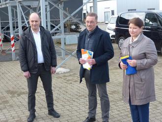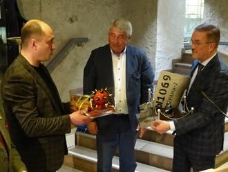 Austausch von Gastgeschenken: v.l. Bürgermeister Buzyl, Stadtrat Karlheinz Kräuter und OB Wagner