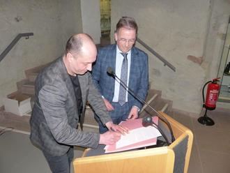 Bürgermeister Buzyl und OB Wagner unterzeichneten eine Erklärung zur Ausgestaltung der Partnerschaft beider Städte.