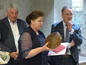 Vizebürgermeisterin Brezkorovaina übergab ein Brot als Zeichen der Verbundenheit.