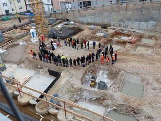 In der Wetzlarer Altstadt wurde mit der Grundsteinlegung am Dienstag, 26. März, für eines der größten Neubau-Projekte in der Stadt Wetzlar offiziell der Startschuss gegeben: am zentralen Domplatz werden anstelle des abgerissenen maroden „Stadthauses am Dom“ die Domhöfe mit einer Investitionssumme von 50 Millionen Euro errichtet. Oberbürgermeister Manfred Wagner (SPD) sprach von einem „guten Tag für Wetzlar“. Der Bau der Domhöfe sei ein Stück „Stadtreparatur“, da das 1979 eröffnete Stadthaus mit immensen Bauschäden behaftet gewesen sei. Mit den Domhöfen könne das Ziel erreicht werden, die Lebendigkeit der Wetzlarer Altstadt zu erhalten und zu stärken. Als Hauptattraktion zieht das naturwissenschaftlich-technische Science Center in den dreiteiligen Baukörper ein. Daneben sind Geschäftsräume, Restaurants, die Tourist-Info und die Musikschule Wetzlar/Lahn-Dill als Mieter vorgesehen. Wagner lobte die zügigen Abbrucharbeiten der beteiligten Baufirmen, die trotz der schwierigen Lage mitten in der Altstadt ruhig und mit wenigen Beschwerden abgelaufen seien. Der Oberbürgermeister gab zugleich bekannt, dass mit der Fertigstellung der Domhöfe im Laufe des Jahres 2026 auch das Parkhaus Goethestraße in Betrieb gehen soll. Der Neubau des Parkhauses wird von der städtischen Stadtentwicklungsgesellschaft SEG verantwortet.