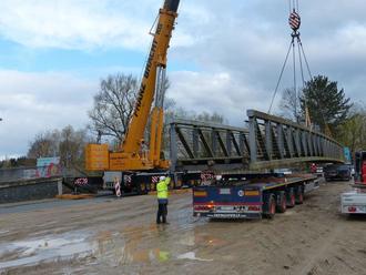 Die 36 Meter lange Dillbrücke wird einem Tieflader auf Reise zur Reparatur ins Emsland geschickt (Foto: Stadt Wetzlar)