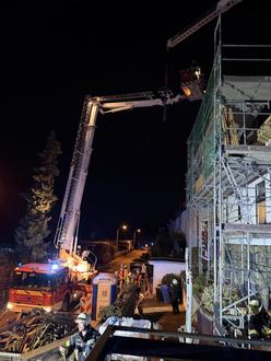 Wir kontrollierten alle Stockwerke im betroffenen Haus und auch von außen über das Gerüst, sowie über den Teleskopmast wurden Kontrollen durchgeführt. Mittels eines Überdrucklüfters wurde der Rauch aus dem Haus geblasen.