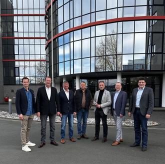 v. l.: Alexander Küster, Knuth Küster, Dieter Küster, Martin Bender, Oberbürgermeister Manfred Wagner, Wirtschaftsförderer Rainer Dietrich, Dr. Andreas Viertelhausen (Foto: Stadt Wetzlar)