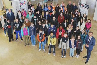 Die Teilnehmenden des Girls‘- und Boys‘Day im Rathaus mit Oberbürgermeister Manfred Wagner (r.) und den Mitarbeitenden der Stadtverwaltung. (Foto: Stadt Wetzlar)