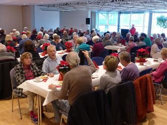 115 Wetzlarer Senioren haben sich in der Stadthalle bei Kaffee und Kuchen auf die Weihnachtszeit eingestimmt. Das Unterhaltungsprogramm wurde von Frank Mignon, dem Erk’schen Männergesangverein und der Kita Marienheim gestaltet. Zudem wurden ehrenamtlich Tätige in der Seniorenarbeit von Oberbürgermeister Manfred Wagner geehrt: Betreuer Freiluftschach: Maja Slutskovskaya und Iakov Slutskovskiy; Betreuer Internetcafé: Ernst Stahl und Saskia Simons; Redaktionsteam Seniorenpost: Dagmar Thum, Herta Virnich, Gunhild Deis-Wiese, Valentin Gerstberger und Irmgard Mende; Seniorentreff- Leitung und Team: Inge Bill, Ulrike Jilg, Marianne Reimann, Johanna Dietrich, Christina Buhl und Dorothea Marx (Leitung); Sicherheitsberater Seniorentreff: Klaus George