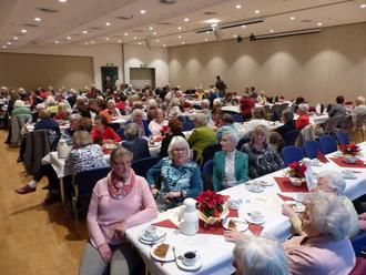 180 Wetzlarer Senioren haben sich am Dienstag, 19. Dezember, in der Stadthalle bei Kaffee und Kuchen auf die Weihnachtszeit eingestimmt. Das Unterhaltungsprogramm wurde von Frank Mignon, dem Erk’schen Männergesangverein und einer Tanzgruppe des Schwarz-Rot-Clubs gestaltet. Oberbürgermeister Manfred Wagner (SPD) rief trotz schwieriger weltpolitischer Lage zur Zuversicht auf und dankte dem Seniorentreff dafür, dass er den Wetzlarer Senioren Woche für Woche einen verlässlichen Ort der Begegnung und des Austausches biete.