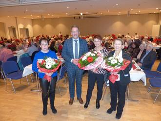 180 Wetzlarer Senioren haben sich am Dienstag, 17. Dezember, in der Stadthalle bei Kaffee und Kuchen auf die Weihnachtszeit eingestimmt. Das Unterhaltungsprogramm wurde von Norbert Schenk am Keyboard, dem Erk’schen Männergesangverein und Rudolf Lüdemann mit der Steirischen Mundharmonika gestaltet. Oberbürgermeister Manfred Wagner (SPD) rief trotz schwieriger weltpolitischer Lage zur Zuversicht auf und dankte dem Seniorentreff dafür, dass er den Wetzlarer Senioren Woche für Woche einen verlässlichen Ort der Begegnung und des Austausches biete. Wagner erwähnte in „dankbarer Erinnerung“ die langjährige Leiterin des Seniorentreffs, Dorothea Marx, die im Oktober im Alter von 82 Jahren verstorben ist. Sie habe die Tradition der Seniorenweihnachtsfeier mitbegründet. Neu in das Helferteam des Seniorentreffs ist nun Eva Schermbach eingestiegen.