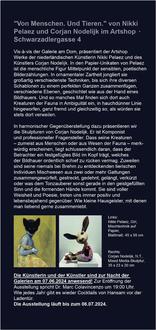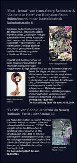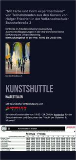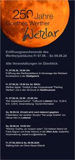 Der ausführliche Programmflyer der „Nacht der Galerien und Museen“ mit dem Verzeichnis aller Ausstellungen und dem Fahrplan des Kunstshuttles ist im Neuen Rathaus, der Stadtbibliothek und den Museen oder online auf https://www.wetzlar.de/rathaus/aktuelles/pressemitteilungen/2024/mai/nacht-der-galerien-und-museen-in-wetzlar-2024.php?p=4021,3932,11407,4249,94924 erhältlich.