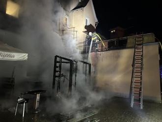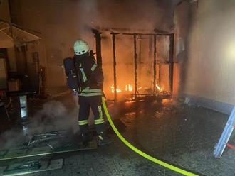Im Hinterhof eines Gebäudes in der Silhöfertorstrasse brannte ein Unterstand und dort gelagerte Sitzmöbel. Das Feuer griff vor Eintreffen der Feuerwehr auf Teile einer Dachterasse über. Die Feuerwehr Wetzlar war mit 34 Einsatzkräften vor Ort und bekämpfte das Feuer mit zwei C-Rohren und einem Trupp unter Atemschutz im Außenangriff.
