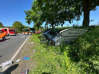 Die Fahrerin des PKW wurde in ihrem Fahrzeug eingeschlossen und musste aufgrund ihrer schweren Verletzungen mittels Hydraulischen Rettungsgerät befreit werden.