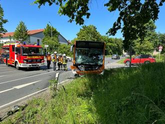 Auf der Landstraße zwischen dem Wetzlarer Ortsteil Naunheim und Lahnau Waldgirmes kam es in einem Kreuzungsbereich zu einem Verkehrsunfall zwischen einem Bus und einem PKW.