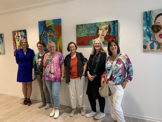 Die Künstlerinnen v.l.: Anne Wahl, Dr. Susanne Schön, Gabriele Köhlinger (Kursleiterin), Dorothea Dietz, Anita Winkels, Karin Rauber (es fehlen: Marina Alexander, Jessica Fritsch, Carolin Wirtgen, Marie Klode-Söhren, Barbara Lambert) (Foto: vhs)