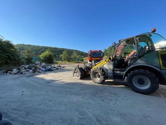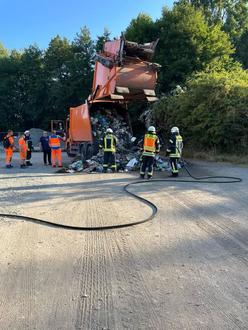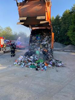 Der Inhalt eines Müllfahrzeuges ist heute morgen in Nauborn in Brand geraten. Die Besatzung des Fahrzeuges bemerkte bei Ihrer Tour in der Nauborner Weilstraße eine starke Rauchentwicklung. Um ein ablöschen zu ermöglichen, musste der Müll aus dem Fahrzeug entfernt werden. Dazu wurde das Müllfahrzeug auf den Nauborner Festplatz gefahren. Auf der Strecke dorthin wurde es von uns eskortiert. Der Inhalt wurde dann ausgeleert und abgelöscht. 1 Trupp unter Atemschutz erledigte diese Aufgabe mit einem C-Rohr. Die Nachlöscharbeiten gestalteten sich langwierig. Zur Unterstützung beim auseinanderziehen wurde ein Radlader der Stadt Wetzlar angefordert. Der Einsatz war gegen 10:00 Uhr für die letzten Kräfte der Feuerwehr Wetzlar beendet.