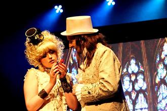 Gretchen (l.) und Faust (r.) in der Neuinterpretation des Klassikers „Faust“ von Johann Wolfgang von Goethe, dem Rocktheater „Faust’n’Roll“. (Foto: Eva-Maria Wiegand im Auftrag von M. M.)